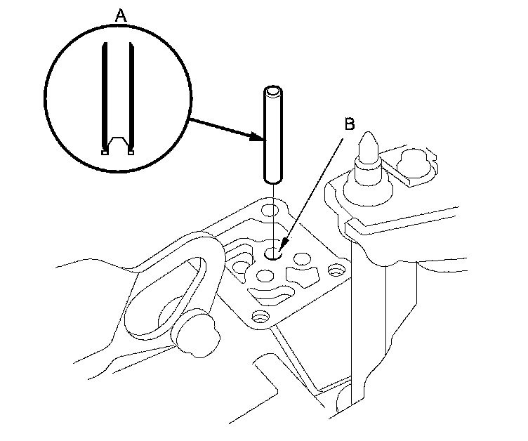 15. Install the 8 x 53 mm ATF pipe (A) with the filter end into its mounting hole (B).