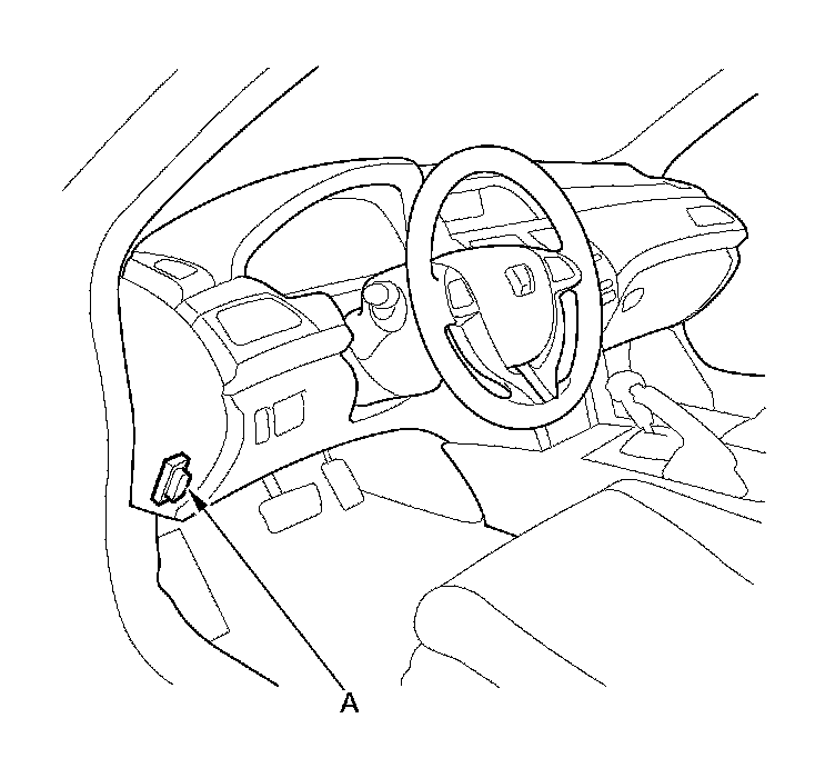 When the Honda Diagnostic System (HDS) is connected to the data link connector (DLC) (A) located under the driver's side of the dashboard, and when the ignition switch is turned to ON (II) and the appropriate menu is selected, it will indicate the diagnostic trouble code (DTC).