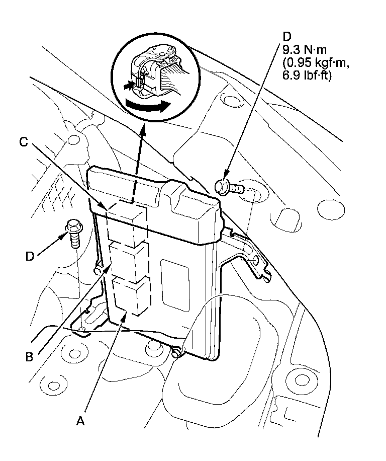NOTE: The PCM overwrites data and monitors the EVAP system for about an hour after the ignition switch is turned to LOCK (0). Jumping the SCS line after turning the ignition switch to LOCK (0) cancels this function. Disconnecting the PCM during this function, without jumping the SCS line first, can damage the PCM.