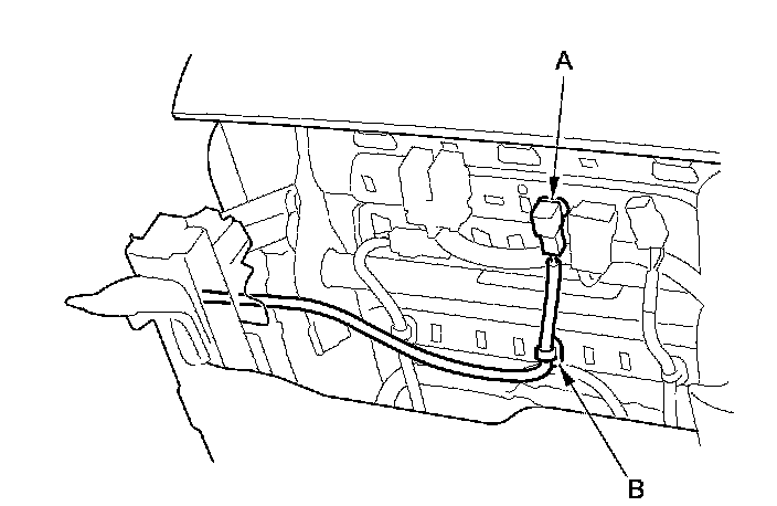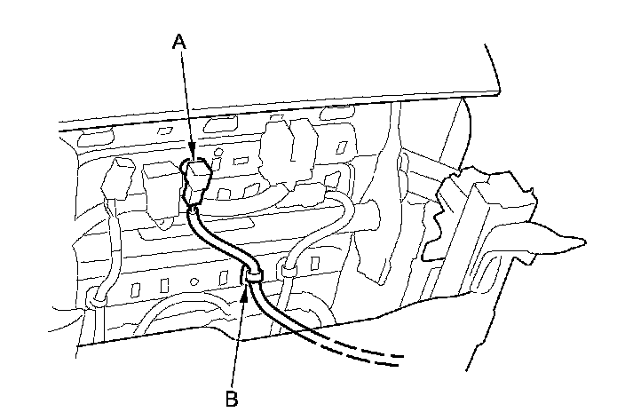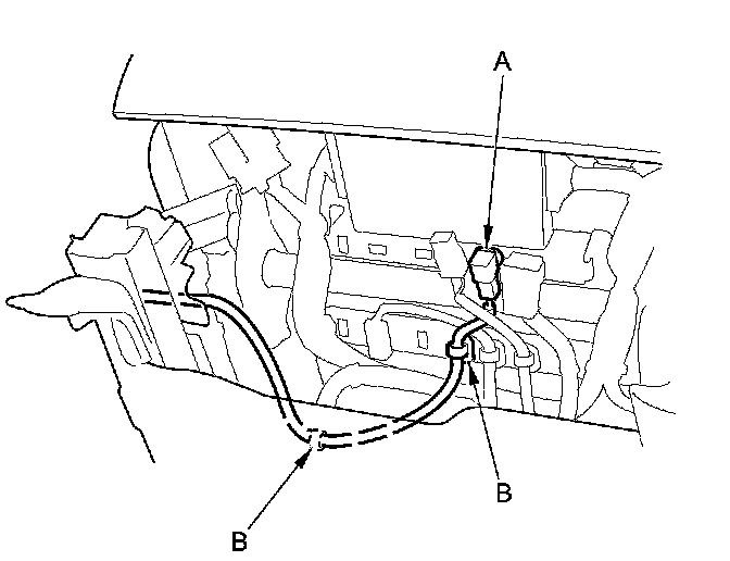 3. Lift up the front seat, then detach the seat belt buckle switch connector clip (A) and the harness clip(s) (B).