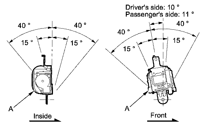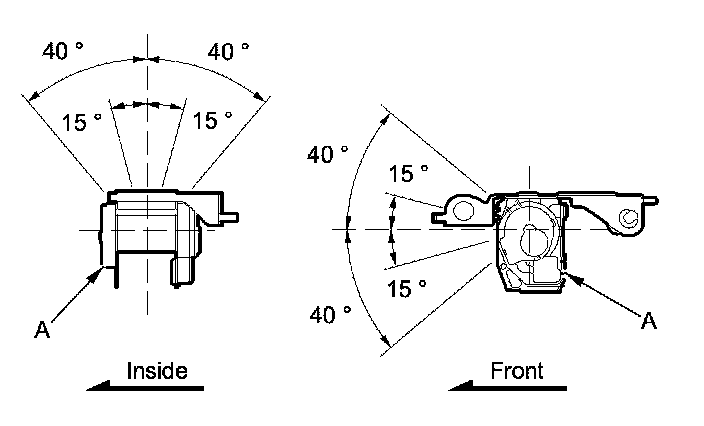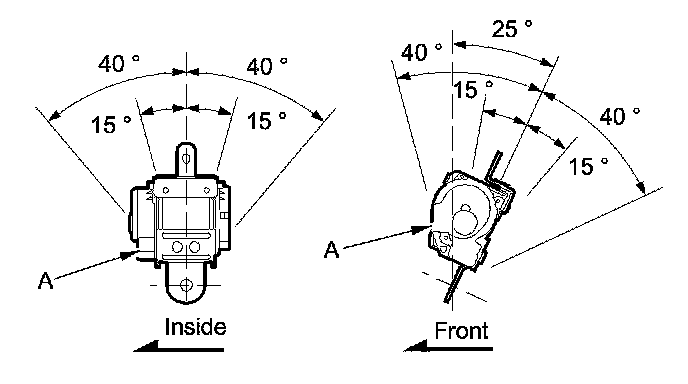 2. Make sure that the seat belt does not lock when the retractor (A) is leaned slowly up to 15 ° from the mounted position. The seat belt should lock when the retractor is leaned over 40 °. Do not attempt to disassemble the retractor.