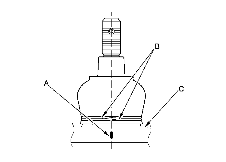3. Paint a alignment mark (A) in the center between the both boot clip end faces (B) on the appropriate part (C).