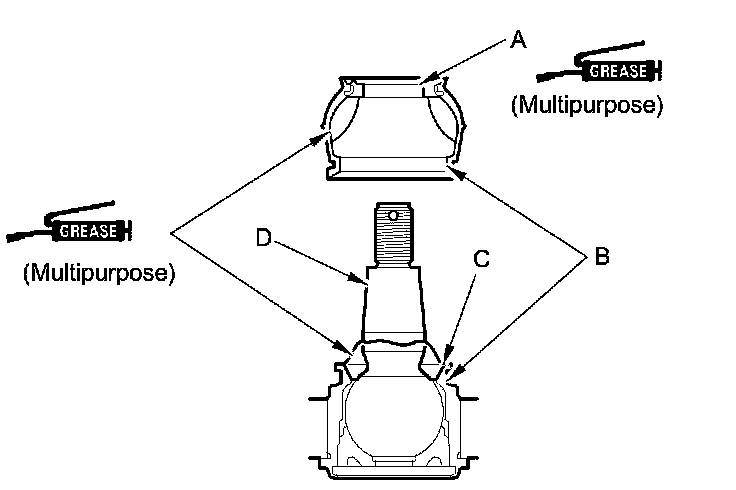 6. Pack fresh grease into the base (C). Do not let dirt or other foreign materials get into the boot.