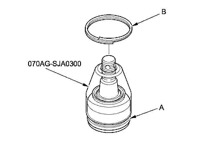 8. The front knuckle ball joint or the rear upper arm ball joint: Adjust the depth by turning the clip guide until its base is just above the groove around (A) the bottom of the boot. Then slide the clip (B) over the clip guide and into position on the boot.