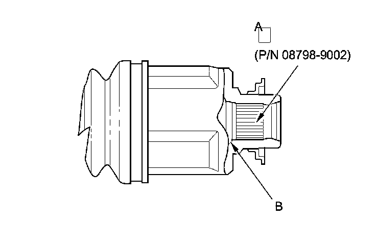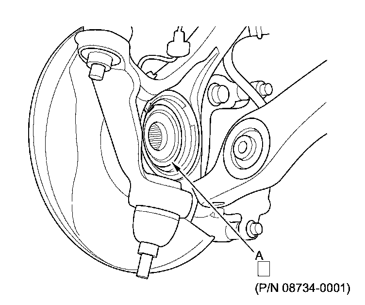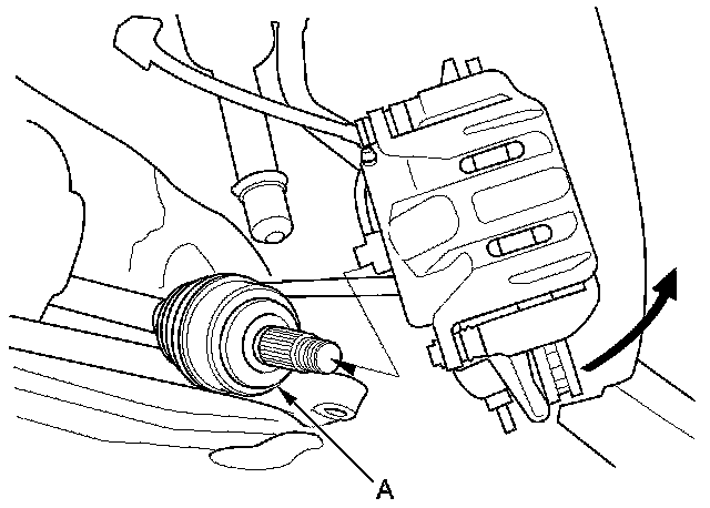 7. Install the outboard joint (A) into the front hub on the knuckle.