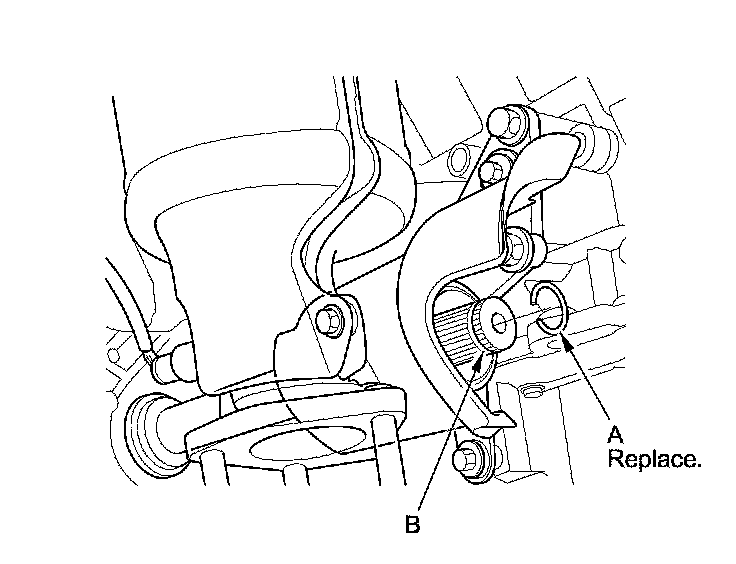 2. Install a new set ring (A) into the set ring groove (B) of the left driveshaft inboard joint.