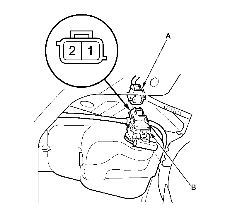 2. Disconnect the 2P connector (A) from the windshield/rear window washer motor (B).