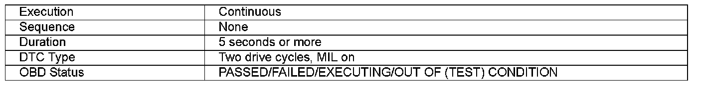 Monitor Execution, Sequence, Duration, DTC Type, OBD Status