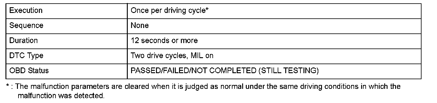- After clearing the DTC by disconnecting the battery or using the scan tool, extend Driving Pattern step 2 to 40 minutes or longer to allow time for long term fuel trim to recover.