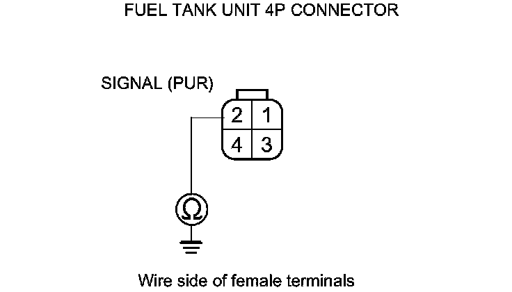 19. Check for continuity between fuel tank unit 4P connector terminal No. 2 and body ground.