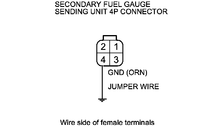 12. Connect secondary fuel gauge sending unit 4P connector terminal No. 4 to body ground with a jumper wire.