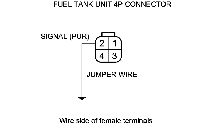 14. Connect fuel tank unit 4P connector terminal No. 2 to body ground with a jumper wire.