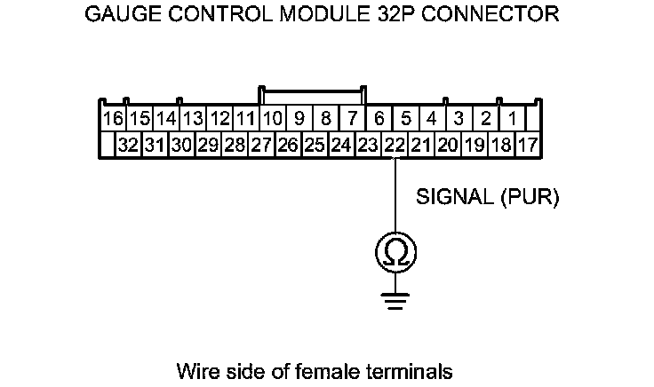 15. Check for continuity between gauge control module 32P connector terminal No. 22 and body ground.