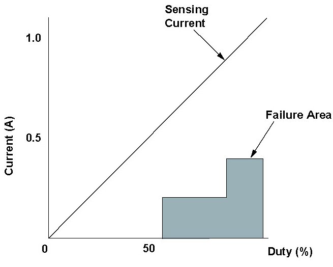 The measured current for the PCM's command value is as specified here for at least 1 second.