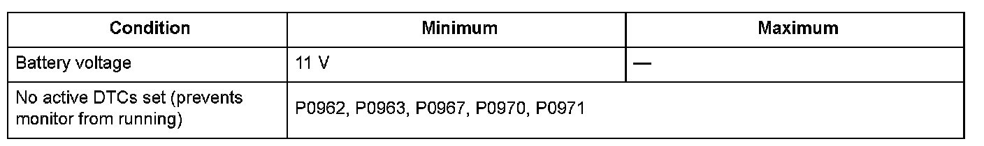 Conditions for setting the DTC