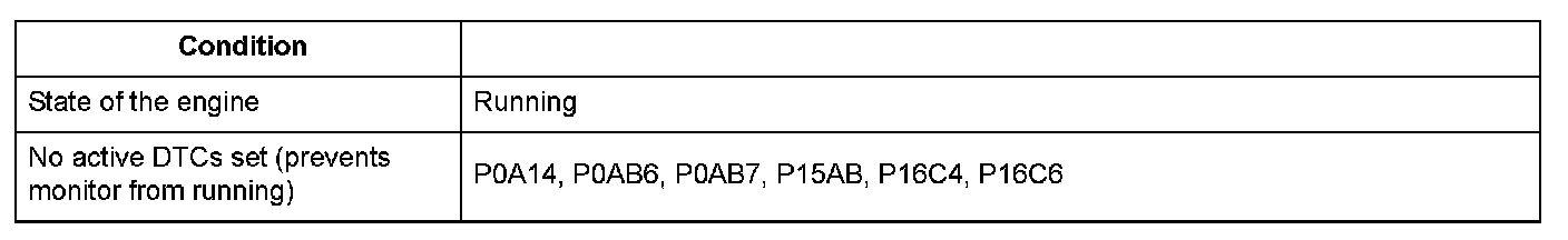 Conditions for setting the DTC