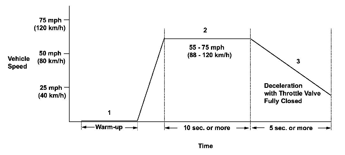 3. Decelerate with the throttle valve fully closed for at least 5 seconds.