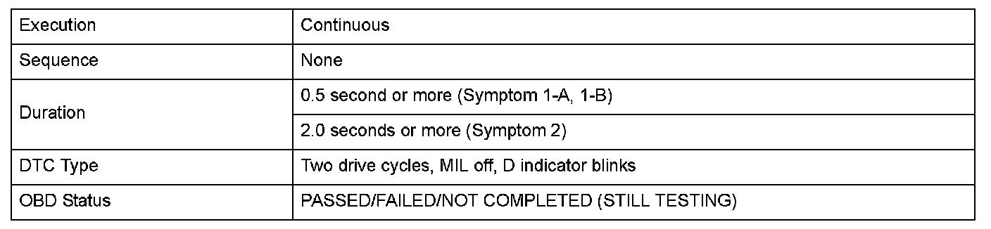 Monitor Execution, Sequence, Duration, DTC Type, OBD Status