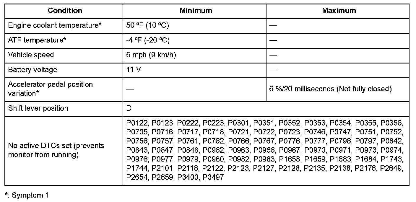 When a malfunction is detected during the first drive cycle, a Pending DTC is stored in the PCM memory. If the malfunction returns in the next (second) drive cycle, a Confirmed DTC and the freeze data are stored. The MIL does not come on.