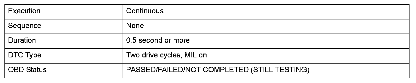 Monitor Execution, Sequence, Duration, DTC Type, OBD Status