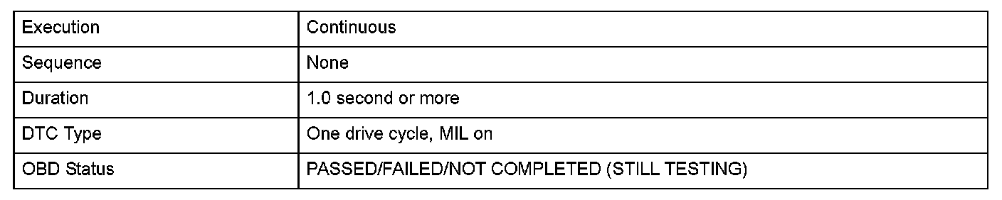 Monitor Execution, Sequence, Duration, DTC Type, OBD Status