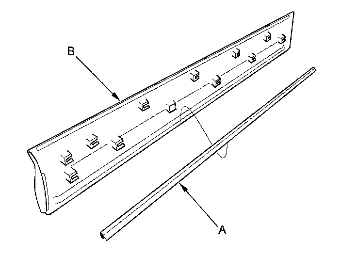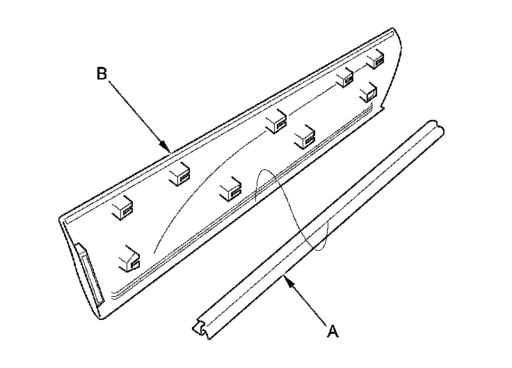 2. Pull out the door side sill lower seal (A), then remove the seal from the door lower trim (B).