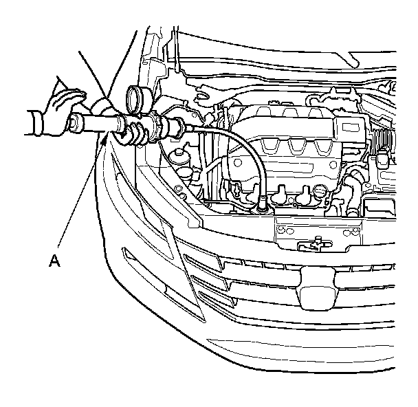 2. Attach a commercially available pressure tester (A) to the radiator, and apply a pressure of 93-123 kPa (0.95-1.25 kgf/cm2, 13.5-17.8 psi).