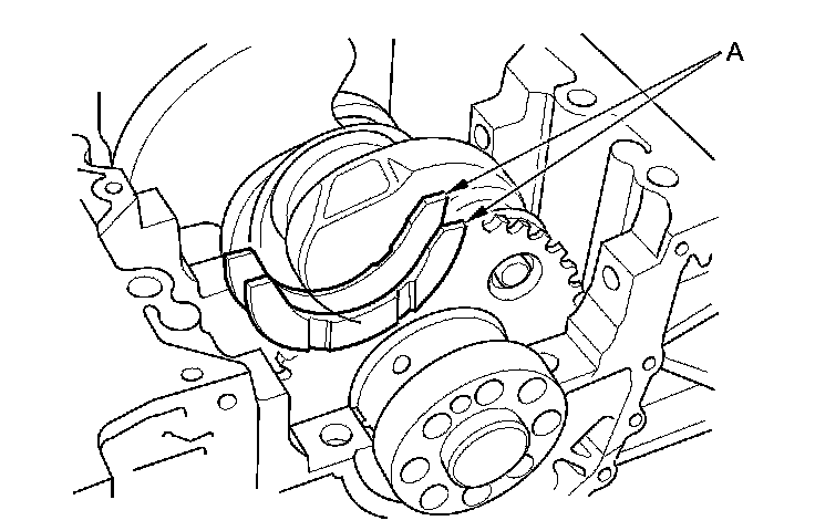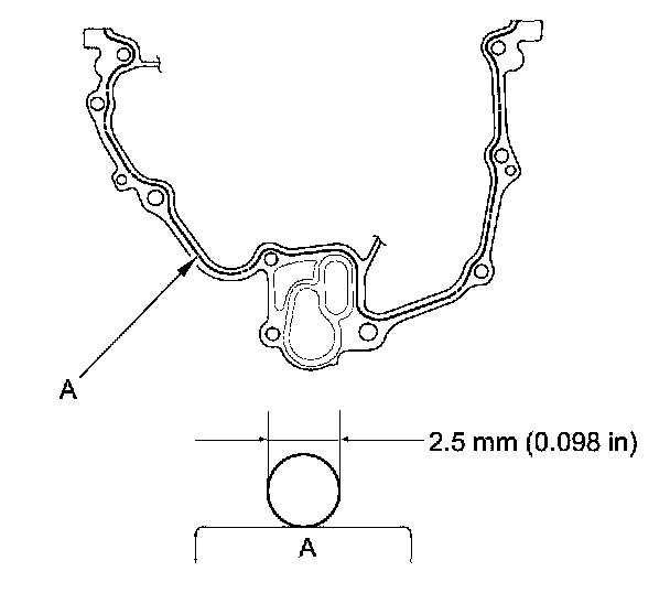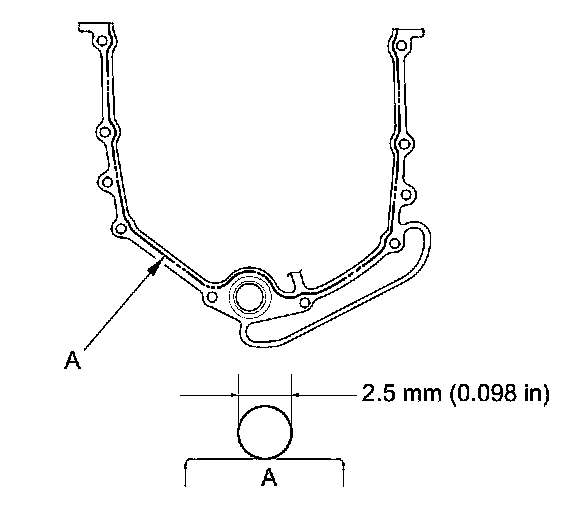 - Apply a 2.5 mm (0.098 in) diameter bead of liquid gasket along the broken line (A).