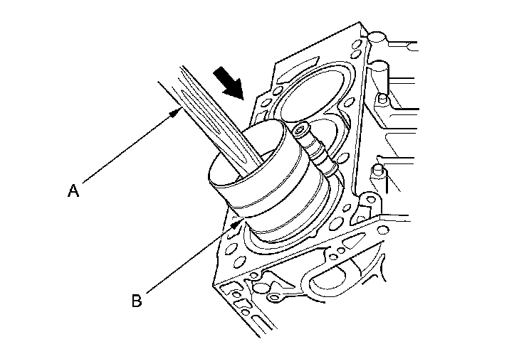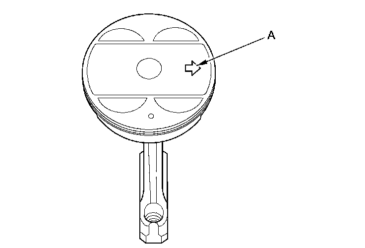 13. Position the piston/connecting rod assembly with the arrow (A) facing the timing belt side of the engine block.