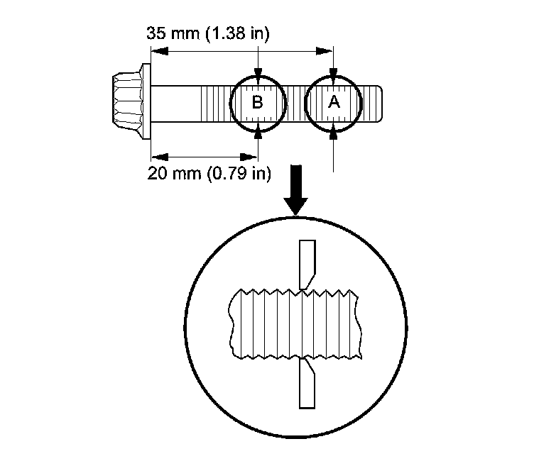 16. Measure the diameter of each connecting rod bolt at point A and point B.