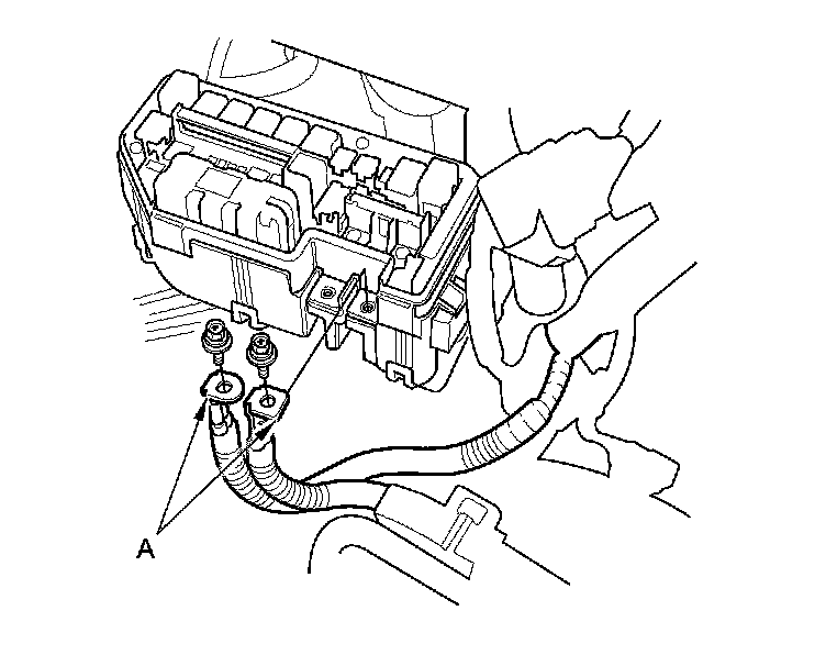 12. Disconnect the battery cables (A) from the under-hood fuse/relay box.