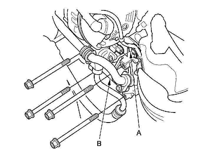 NOTE: Do not remove the TORX bolt (B) from the upper transmission mount. If the TORX bolt is removed, the upper transmission mount must be replaced as an assembly.