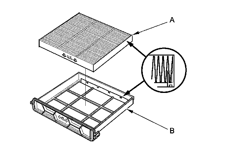 3. Remove the filter (A) from the housing (B), and replace the filter.