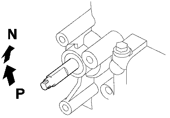 11. With a 6.0 mm wrench, turn the selector control shaft fully counterclockwise (viewed from the shaft end) to the P position. Turn the selector control shaft back two click-stopped positions so that it is in the N position.