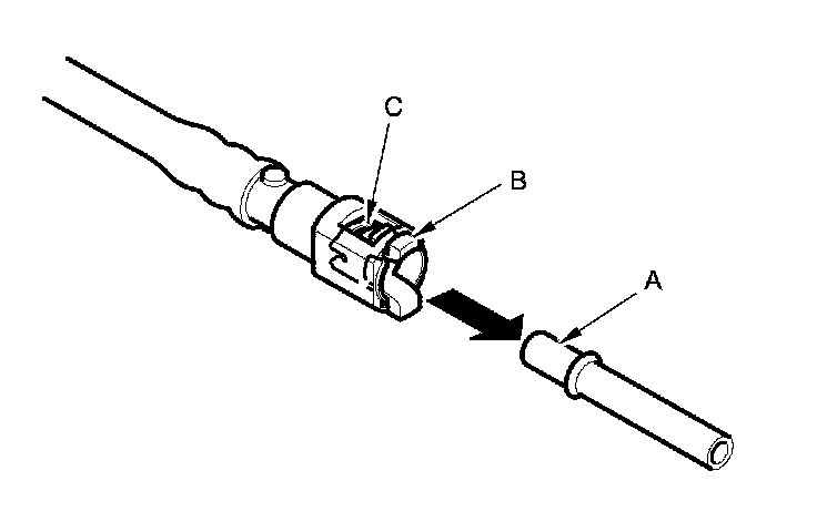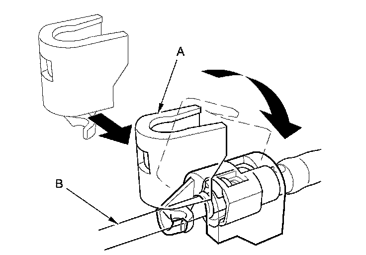 2. Insert a new retainer (A) into the connector (B) if the retainer is damaged, or after: