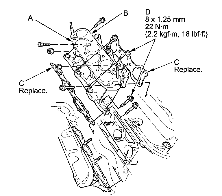 Tighten the bolts and nuts sequentially in three steps. Always use a new intake manifold gasket.