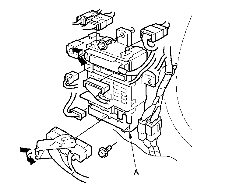 3. Disconnect the connectors from the passenger's under-dash fuse/relay box (A).
