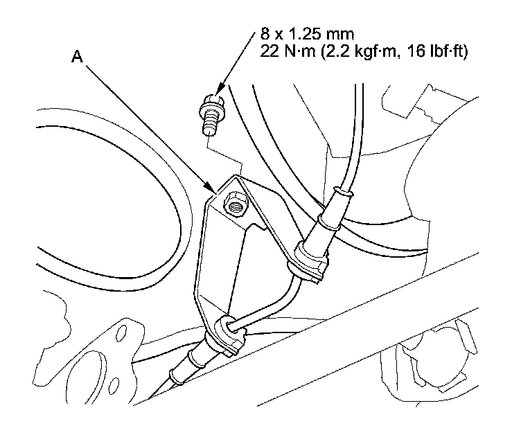8. Remove the wheel speed sensor harness bracket (A).