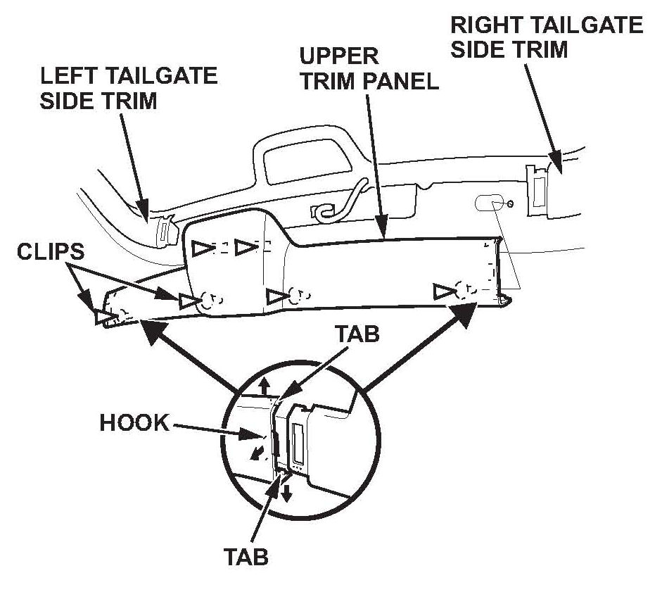 ^ Release the hooks and the tabs from both tailgate side trim.