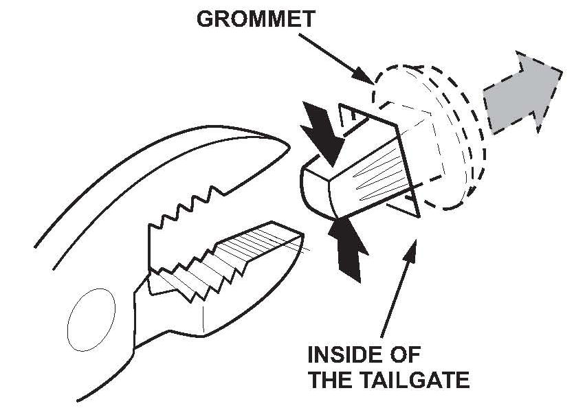 6. Release the grommets with pliers, then push them out of the tailgate.