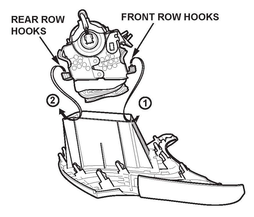 9. Using your hands (not tools), insert the airbag front row hooks into the airbag lid, then insert the rear row hooks.