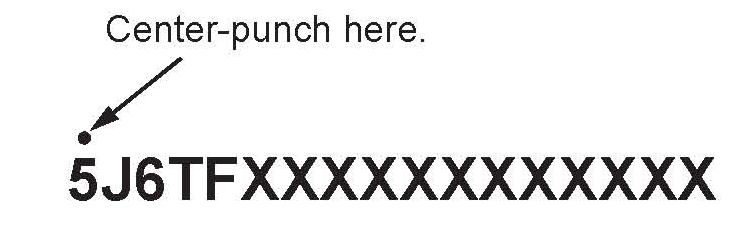 17. Center-punch a completion mark above the first character of the engine compartment VIN.