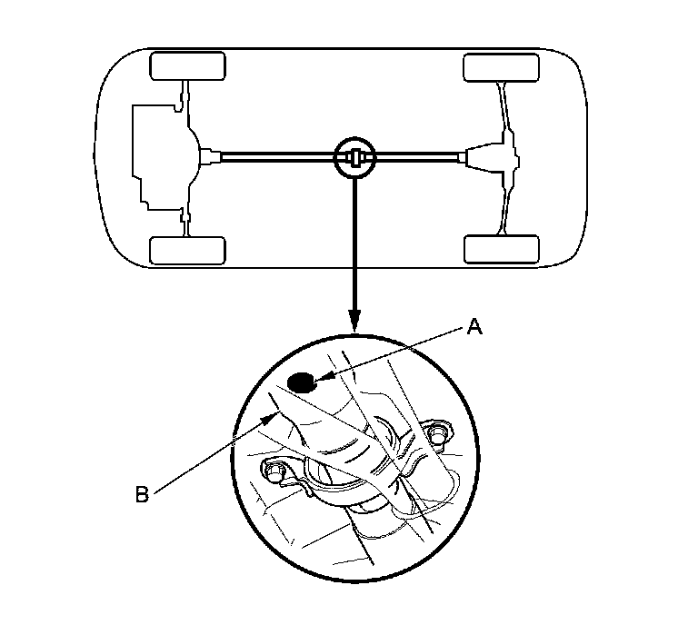 2. Make a mark (A) on either No. 1 or No. 2 propeller shaft (B).