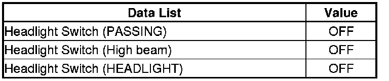 8. Check each combination light switch position value with the DATA LIST menu.
