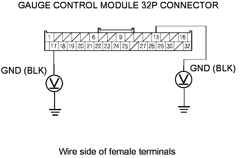 12. Measure the voltage between gauge control module 32P connector terminals No. 13 and No. 17 and body ground individually.