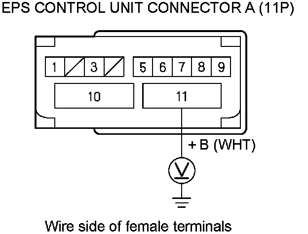 9. Measure the voltage between EPS control unit connector A (11P) terminal No. 11 and body ground.