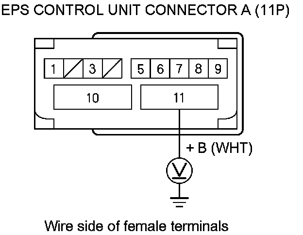 8. Measure the voltage between EPS control unit connector A (11P) terminal No.11 and body ground.