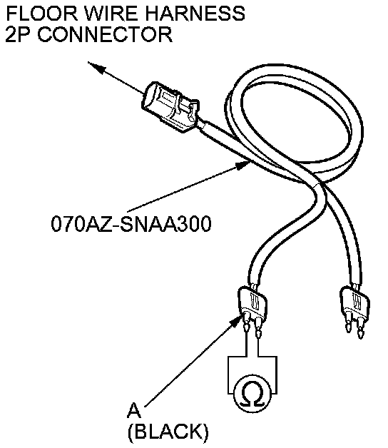 17. Measure the resistance between the terminals of the black SRS simulator lead (A). There should be an open circuit or at least 1 MOhms.