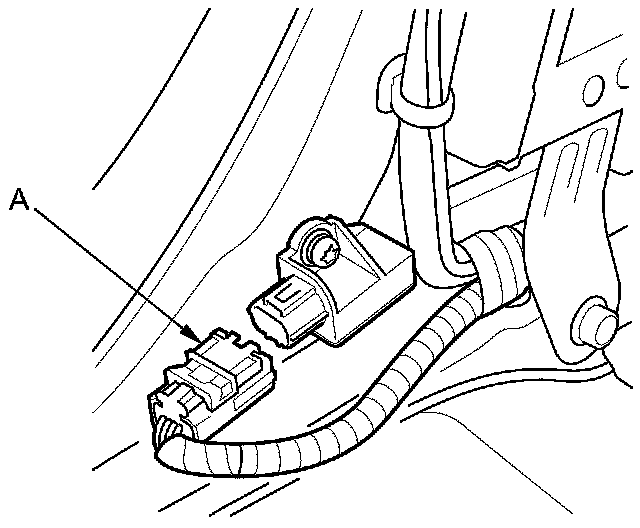 6. Disconnect the floor wire harness 4P connector (A) from the right side impact sensor (first) Side Impact Sensor (First) Replacement.