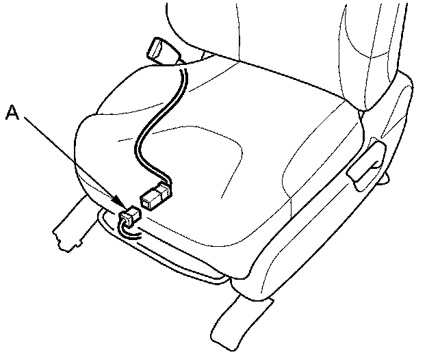 6. Disconnect the floor wire harness 2P connector (A) from the driver's seat belt buckle switch.